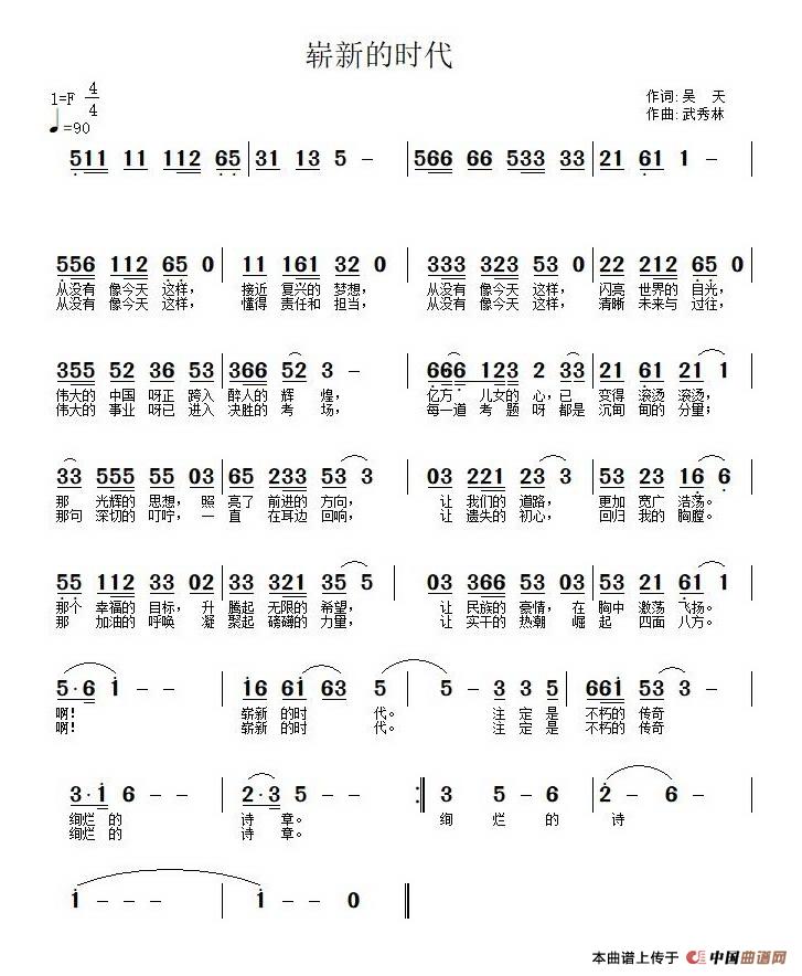 崭新的时代曲谱是由作词:吴天作曲:武秀林,上传:武wuyixuan55,版权归原作者所有。