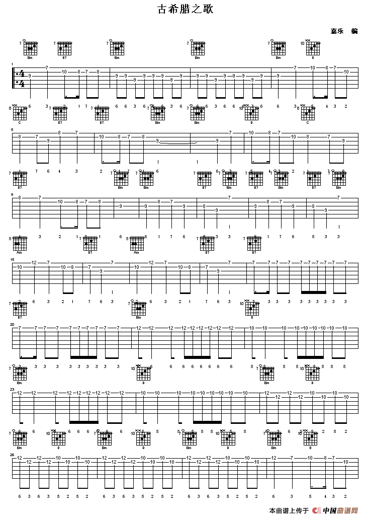 温馨提示:想要保存古希腊之歌(匹克重奏)吉他谱六线谱,展现古希腊风情曲谱?在曲谱图片上单击右键,选择"图片另存为...",即可将该曲谱保存到您的电脑本地,想要打印出来?将图片插入到WORD中,调整合适到大小打印即可。