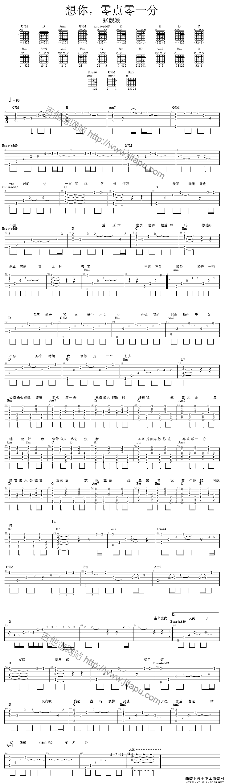 温馨提示:想要保存想你零点零一分吉他谱六线谱,深情思念之旋律曲谱?在曲谱图片上单击右键,选择"图片另存为...",即可将该曲谱保存到您的电脑本地,想要打印出来?将图片插入到WORD中,调整合适到大小打印即可。