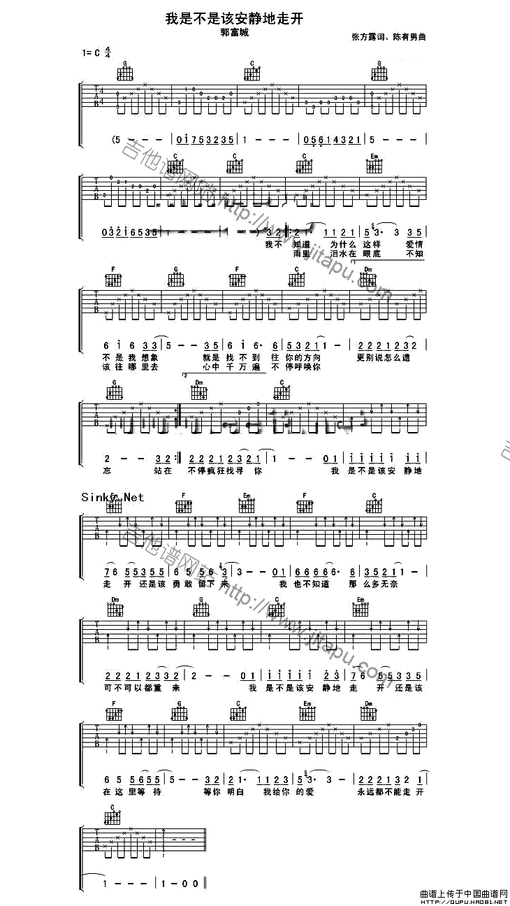 温馨提示:想要保存我是不是该安静地走吉他谱六线谱,唱出离别之哀愁曲谱?在曲谱图片上单击右键,选择"图片另存为...",即可将该曲谱保存到您的电脑本地,想要打印出来?将图片插入到WORD中,调整合适到大小打印即可。
