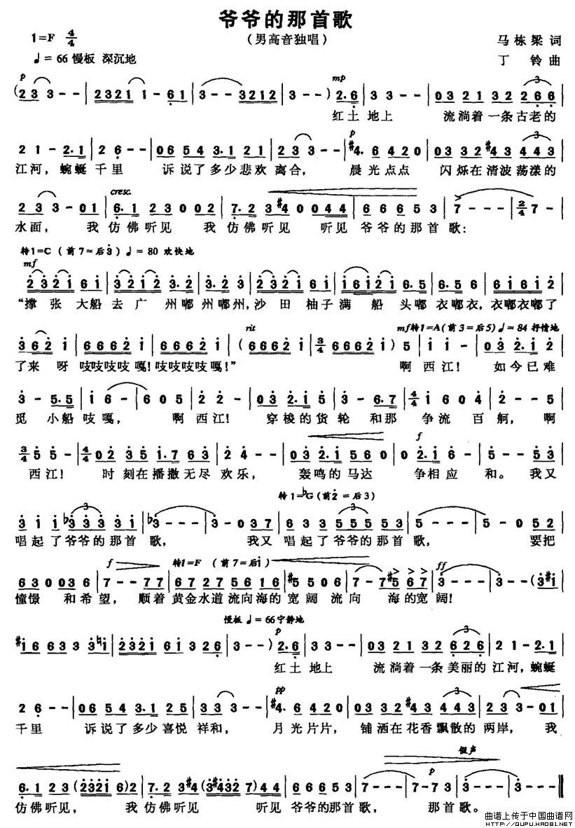 爷爷的那首歌曲谱是由作词:马栋梁作曲:丁铃格式:简谱,上传:秋叶起舞,版权归原作者所有。