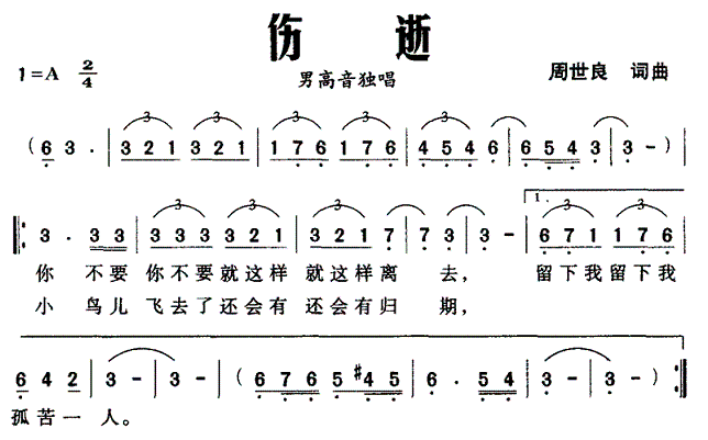 伤逝(周世良词曲)曲谱是由作词:周世良作曲:周世良格式:简谱,上传:秋叶起舞,版权归原作者所有。