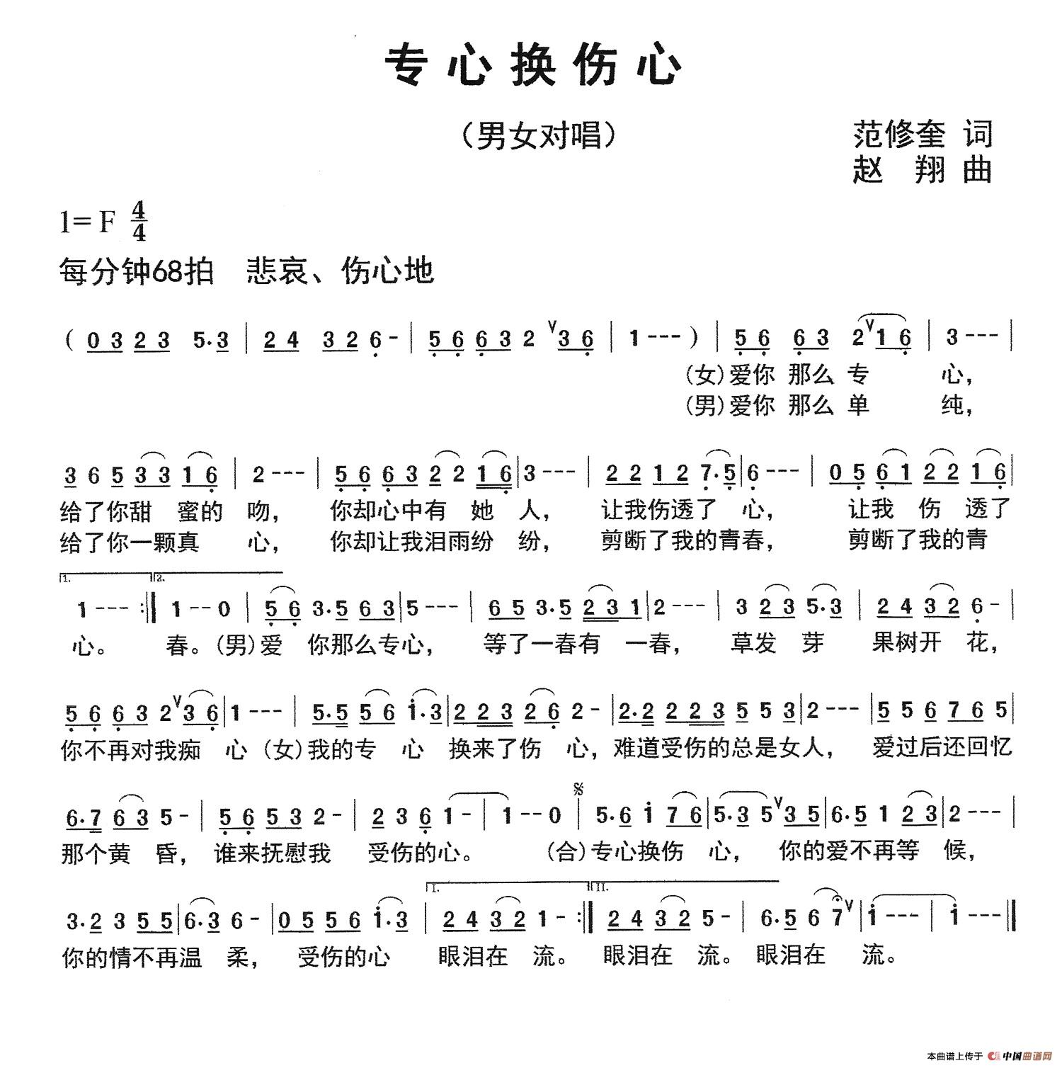 专心换伤心曲谱是由作词:范修奎作曲:赵翔,上传:新人上线,版权归原作者所有。