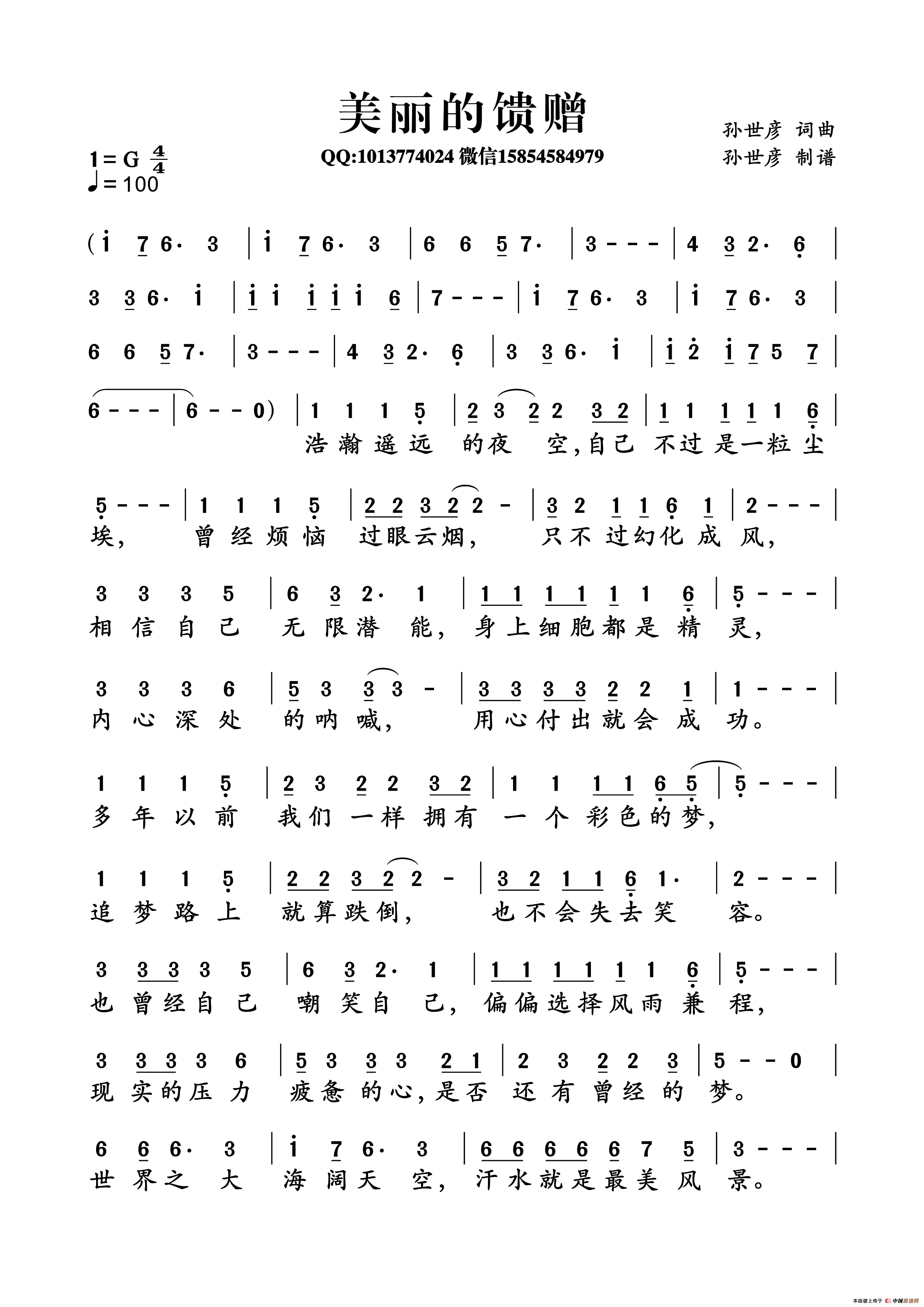 美丽的馈赠(孙世彦词曲)曲谱是由作词:孙世彦作曲:孙世彦,上传:孙世彦,版权归原作者所有。