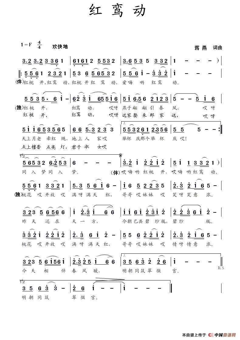 红鸾动曲谱是由作词:蒋燕作曲:蒋燕,上传:燕子,版权归原作者所有。