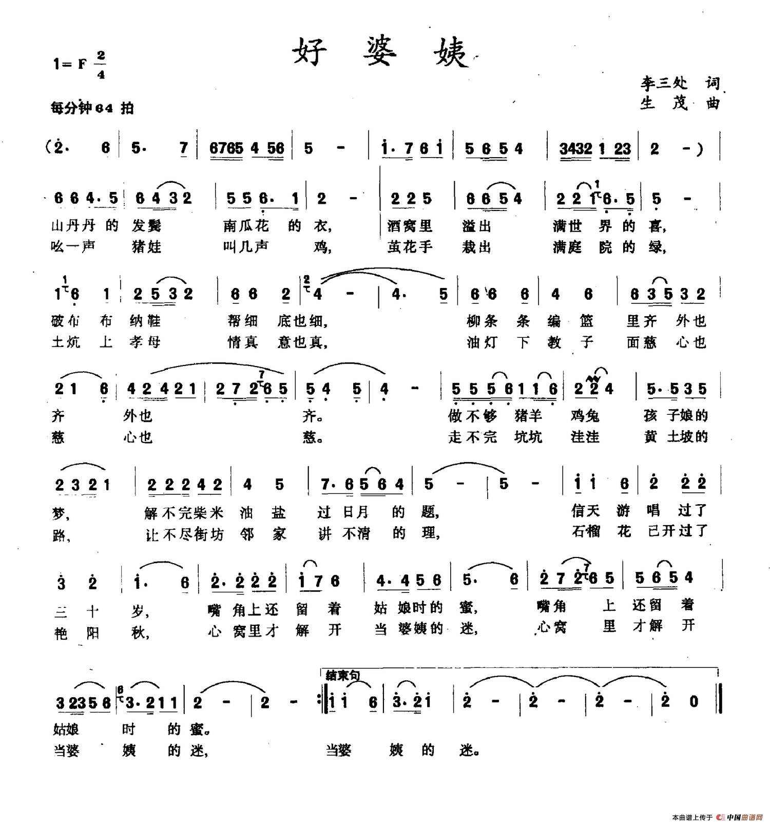 好婆姨曲谱是由作词:李三处作曲:生茂唐诃,上传:沉舟侧畔过,版权归原作者所有。