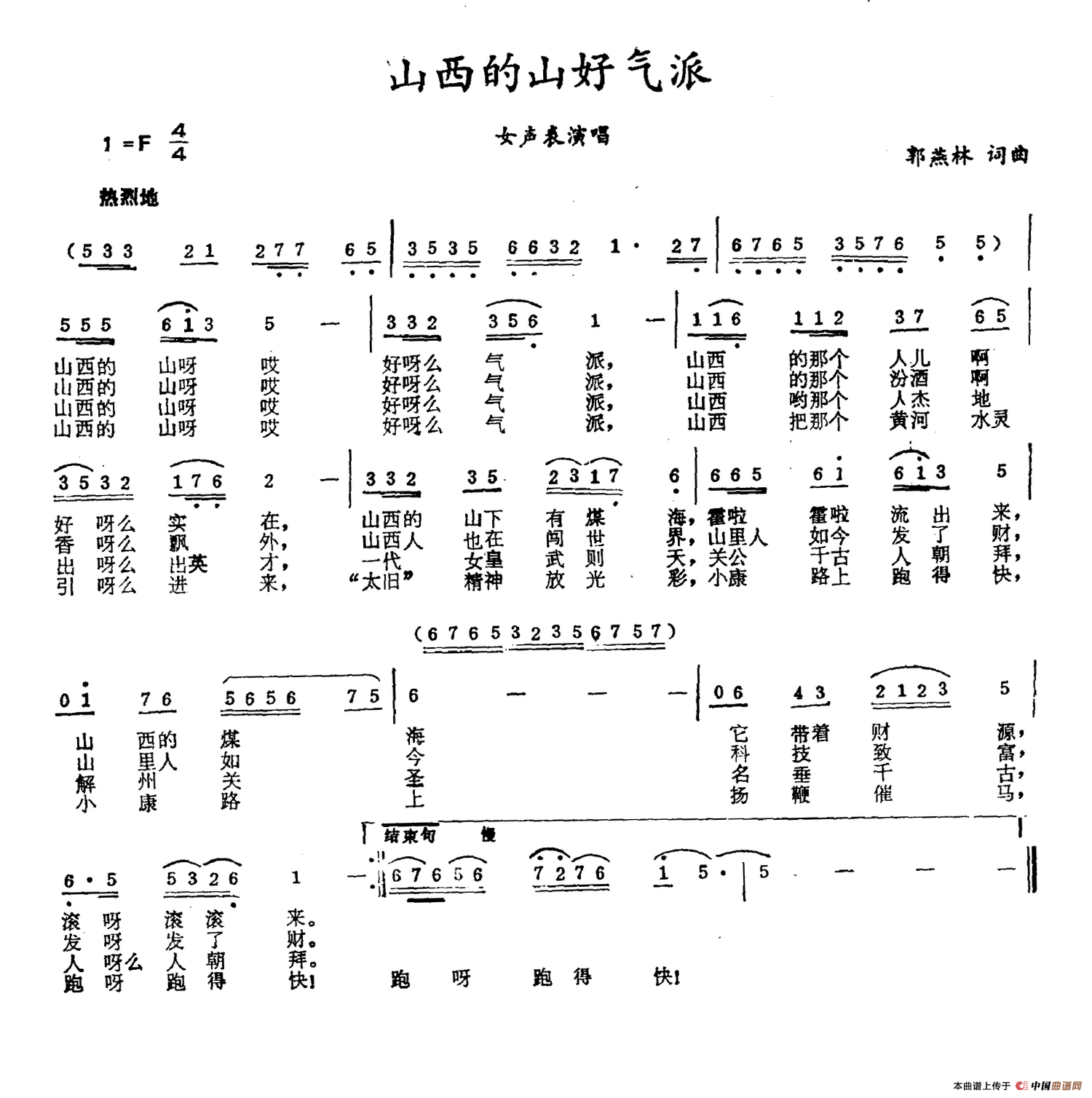 山西的山好气派曲谱是由作词:郭燕林作曲:郭燕林,上传:沉舟侧畔过,版权归原作者所有。