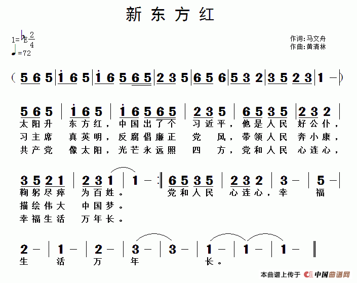新东方红曲谱是由作词:马文舟作曲:黄清林,上传:车里子,版权归原作者所有。