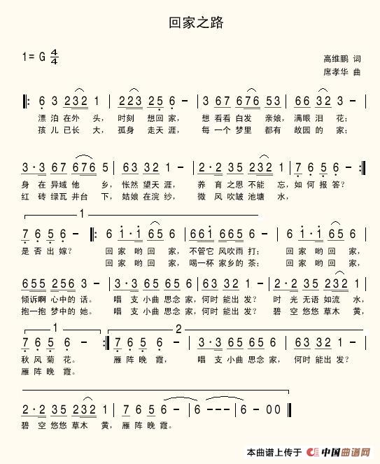 回家之路曲谱是由作词:高伟鹏席孝华作曲:席孝华,上传:席gallgall,版权归原作者所有。
