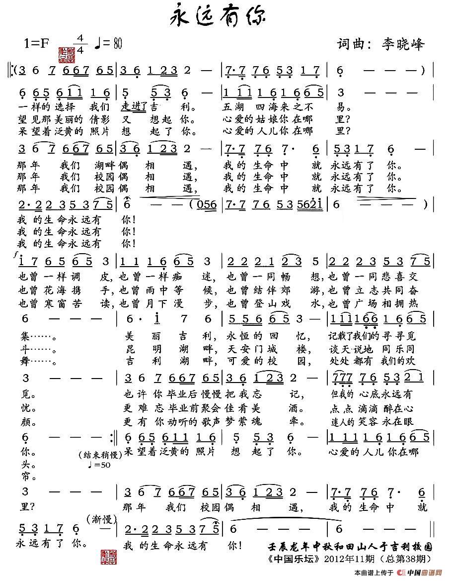 永远有你曲谱是由作词:李晓峰作曲:李晓峰,上传:车里子,版权归原作者所有。