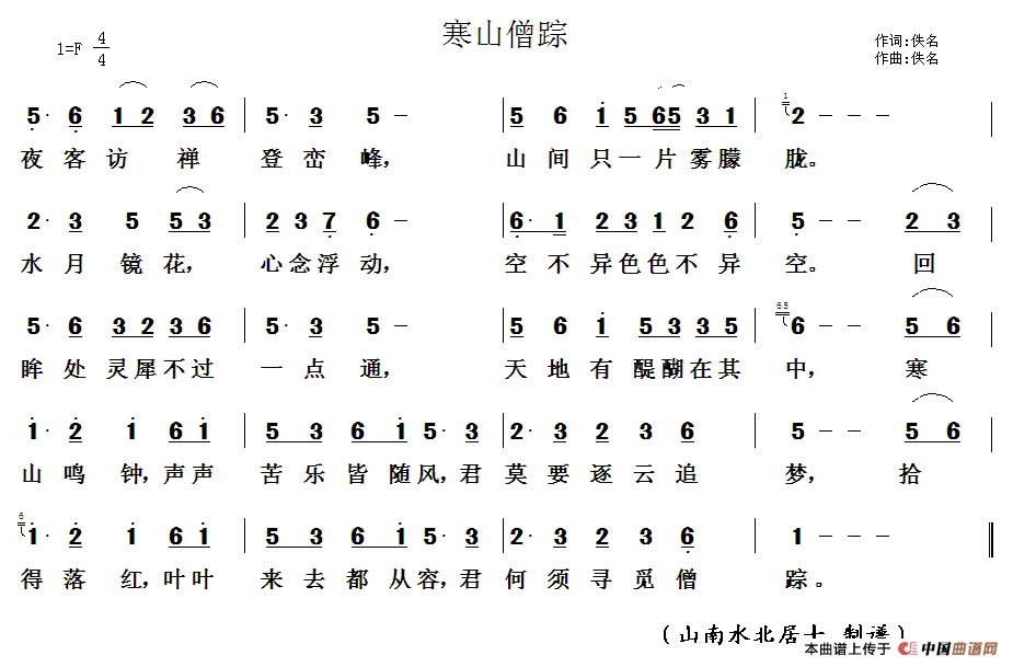 寒山僧踪曲谱是由作词:佚名作曲:佚名,上传:王意超,版权归原作者所有。
