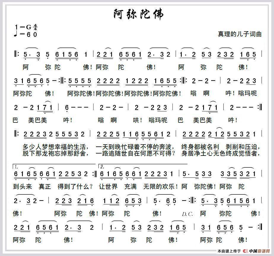 阿弥陀佛(真理的儿子 词曲)曲谱是由作词:真理的儿子作曲:真理的儿子演唱(奏):真理的儿子,上传:真理的儿子,版权归原作者所有。
