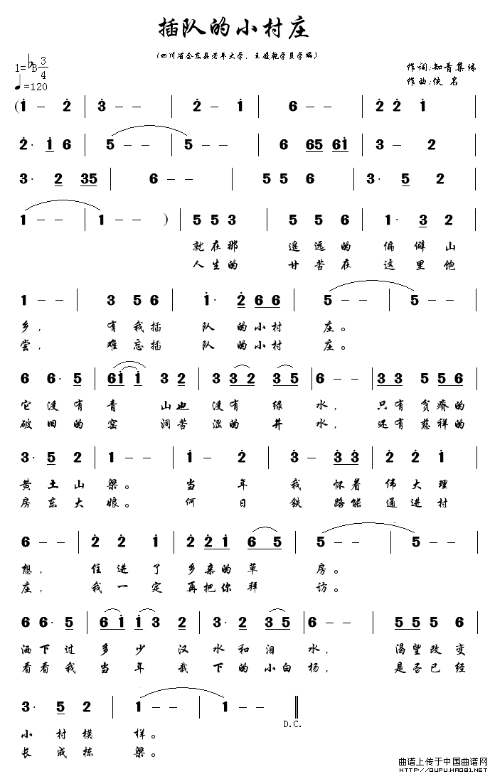 插队的小村庄曲谱是由格式:简谱,上传:秋叶起舞,版权归原作者所有。