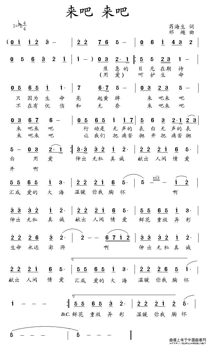 来吧 来吧曲谱是由作词:苟海生作曲:祁越格式:简谱,上传:秋叶起舞,版权归原作者所有。