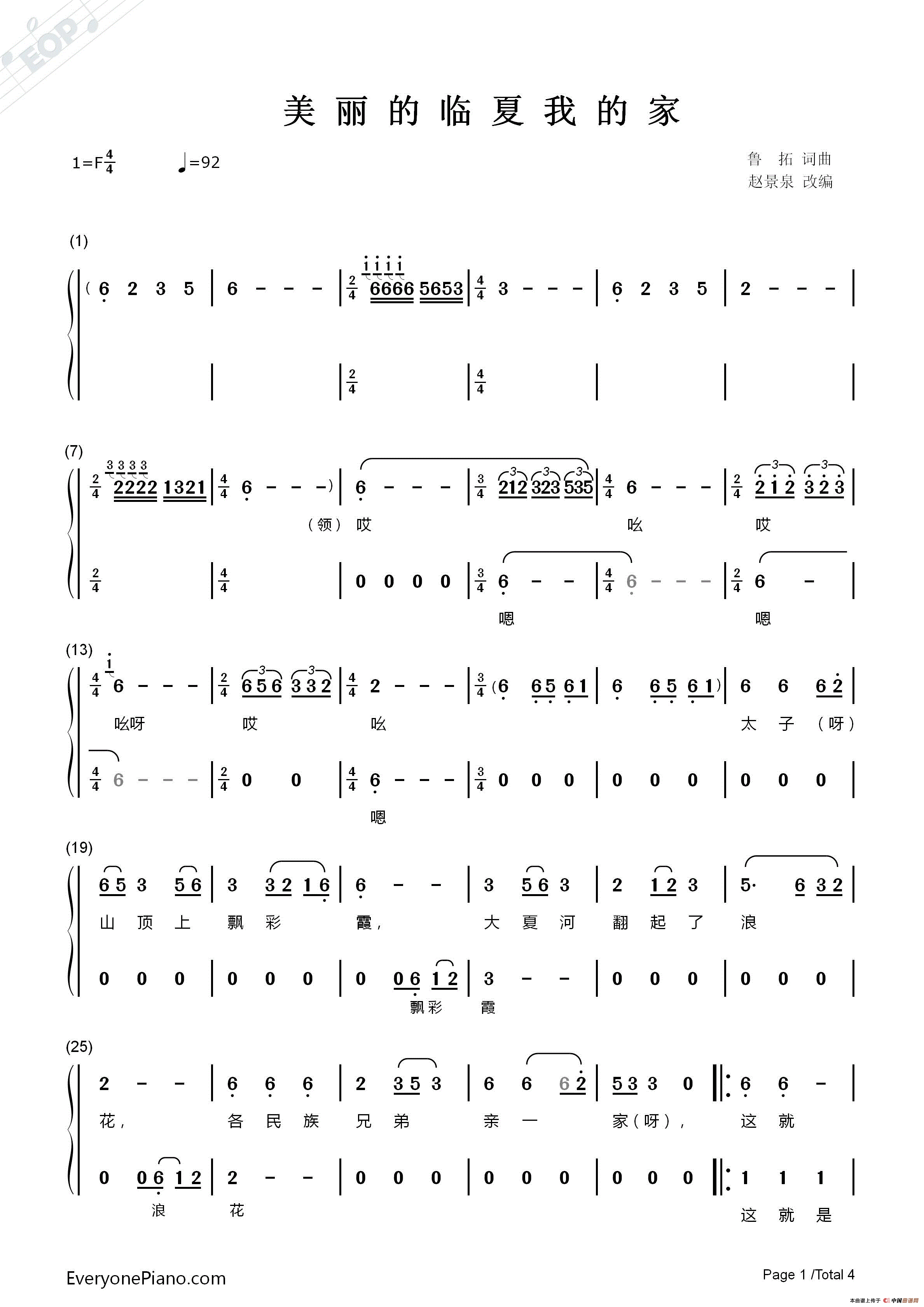美丽的临夏我的家曲谱是由作词:鲁拓作曲:鲁拓赵景泉,上传:泉韵琴音,版权归原作者所有。