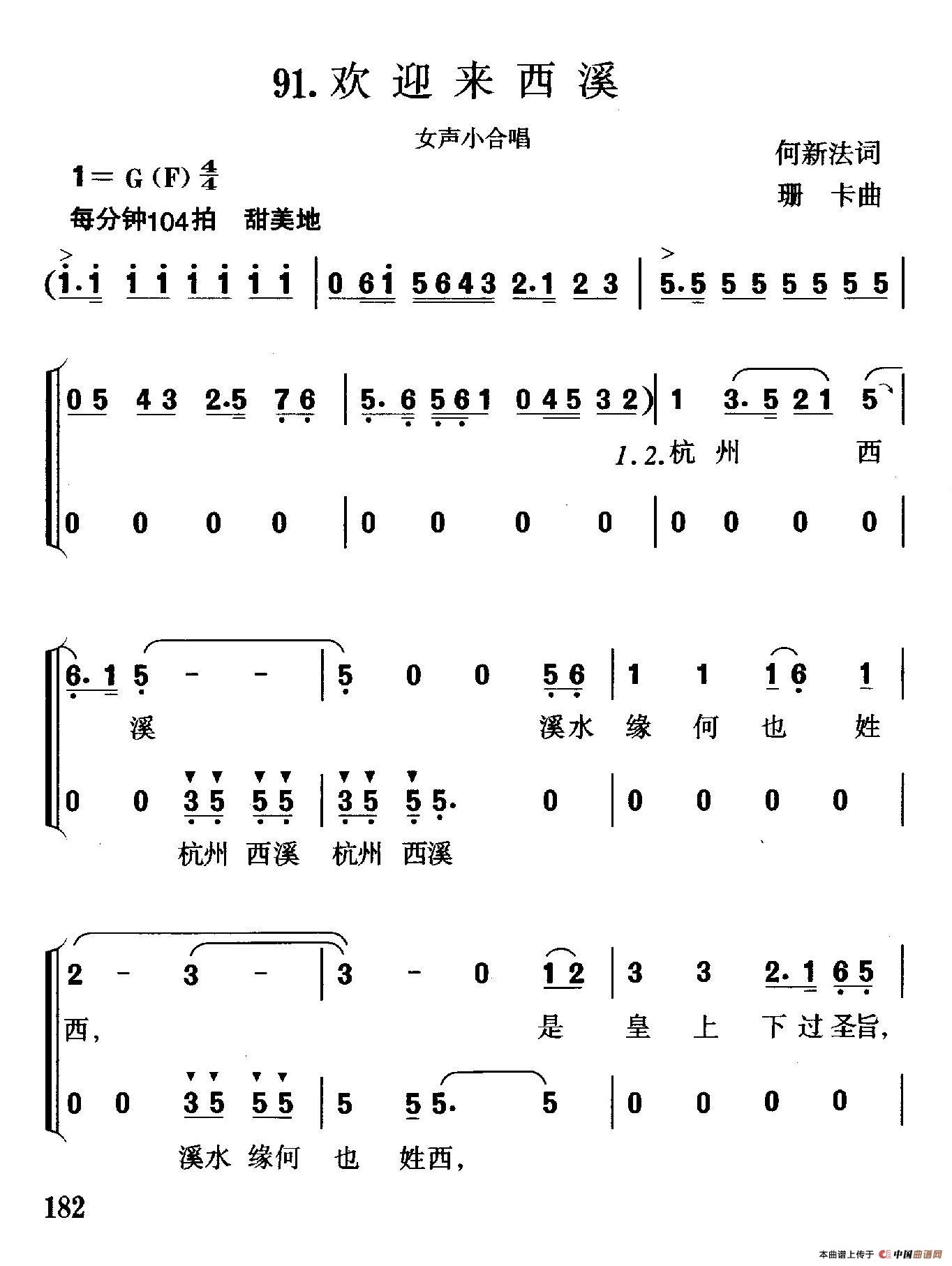欢迎来西溪曲谱是由作词:何新法作曲:珊卡,上传:瓦莲金娜AA,版权归原作者所有。