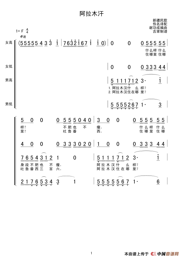 阿拉木汗(吉聿制谱版)曲谱是由作词:佚名作曲:佚名,上传:爱Beyond,版权归原作者所有。