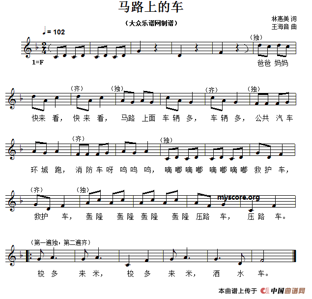 马路上的车(五线谱)曲谱是由作词:林惠美作曲:王海音,上传:秋叶起舞,版权归原作者所有。