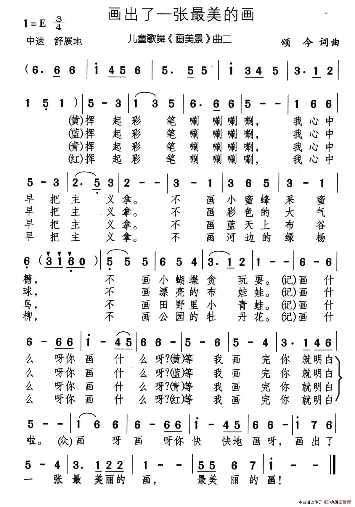 画出了一张最美的画(儿童歌舞画美景曲二)曲谱是由作词:颂今作曲:颂今,上传:秋叶起舞,版权归原作者所有。