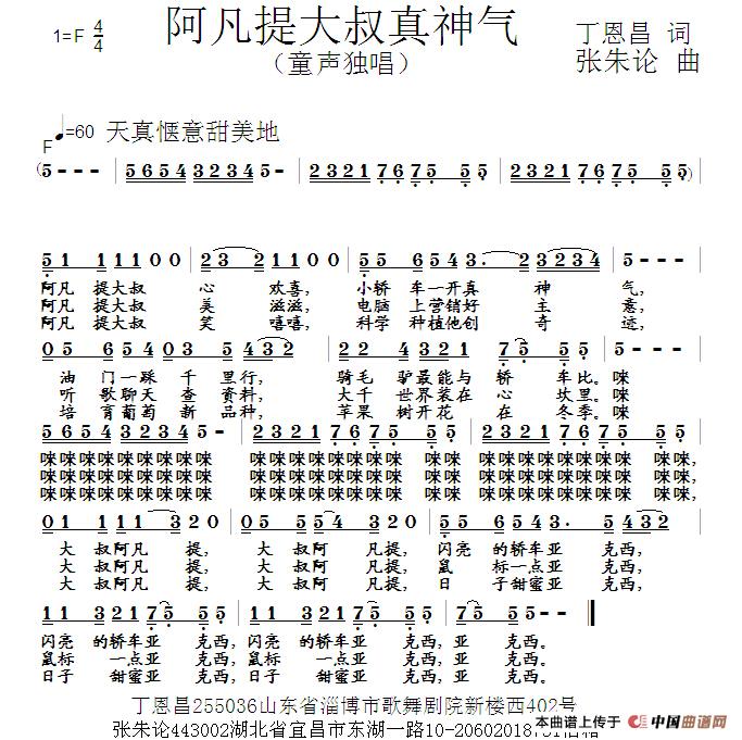 阿凡提大叔好神气(丁恩昌词 张朱论曲)曲谱是由作词:丁恩昌作曲:张朱论,上传:丁恩昌,版权归原作者所有。