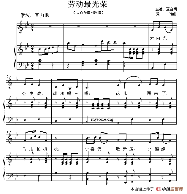 劳动最光荣(正谱)曲谱是由作词:金近夏白作曲:黄淮,上传:秋叶起舞,版权归原作者所有。