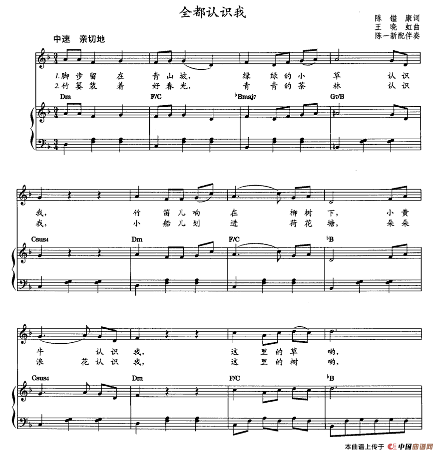全都认识我(教材歌曲即兴配弹)曲谱是由作曲:陈一新编配,上传:秋叶起舞,版权归原作者所有。