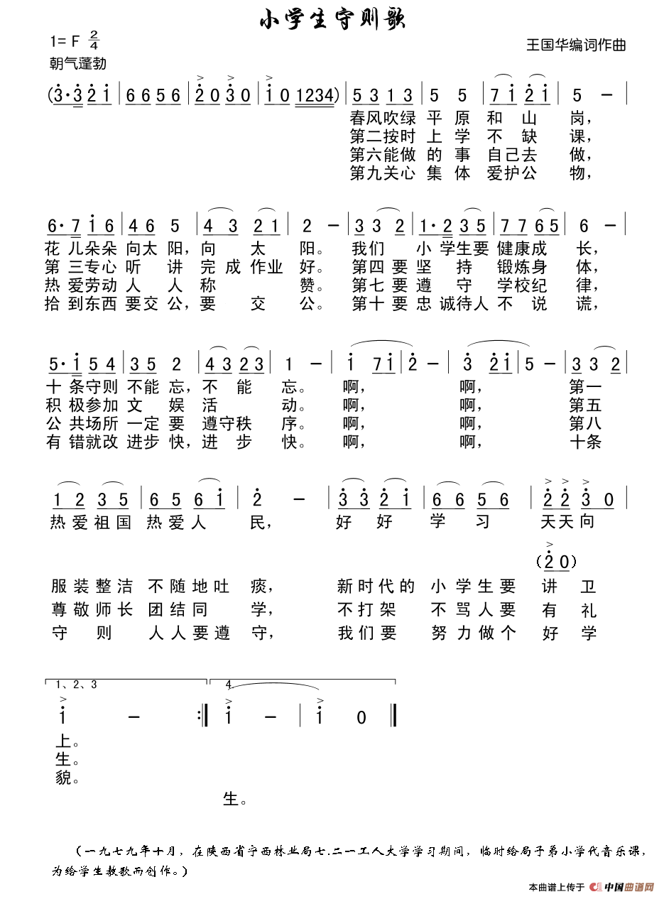 小学生守则歌曲谱是由作词:王国华作曲:王国华,上传:秋叶起舞,版权归原作者所有。