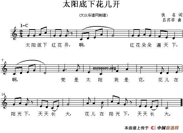 温馨提示:想要保存太阳底下花儿开简谱,展现美好意境曲谱?在曲谱图片上单击右键,选择"图片另存为...",即可将该曲谱保存到您的电脑本地,想要打印出来?将图片插入到WORD中,调整合适到大小打印即可。