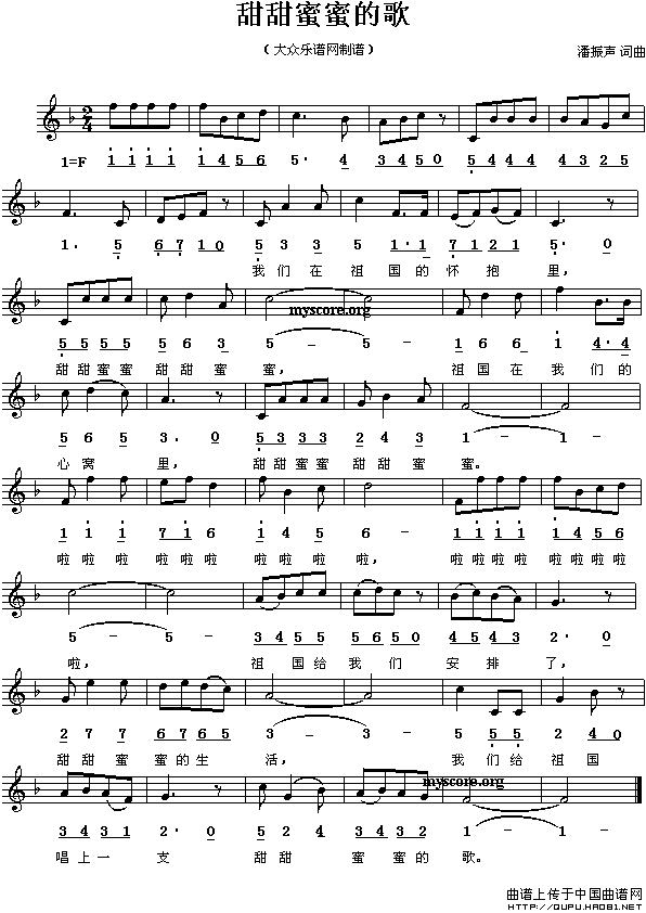 甜甜蜜蜜的歌(线、简谱混排版)曲谱是由作词:潘振声作曲:潘振声格式:简线混排,上传:秋叶起舞,版权归原作者所有。