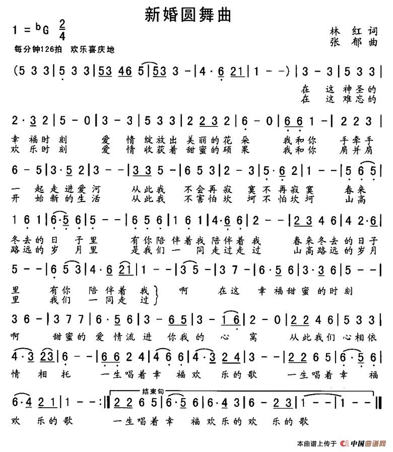 新婚圆舞曲 (林红词 张郁曲)曲谱是由作词:林红作曲:张郁,上传:车里子,版权归原作者所有。
