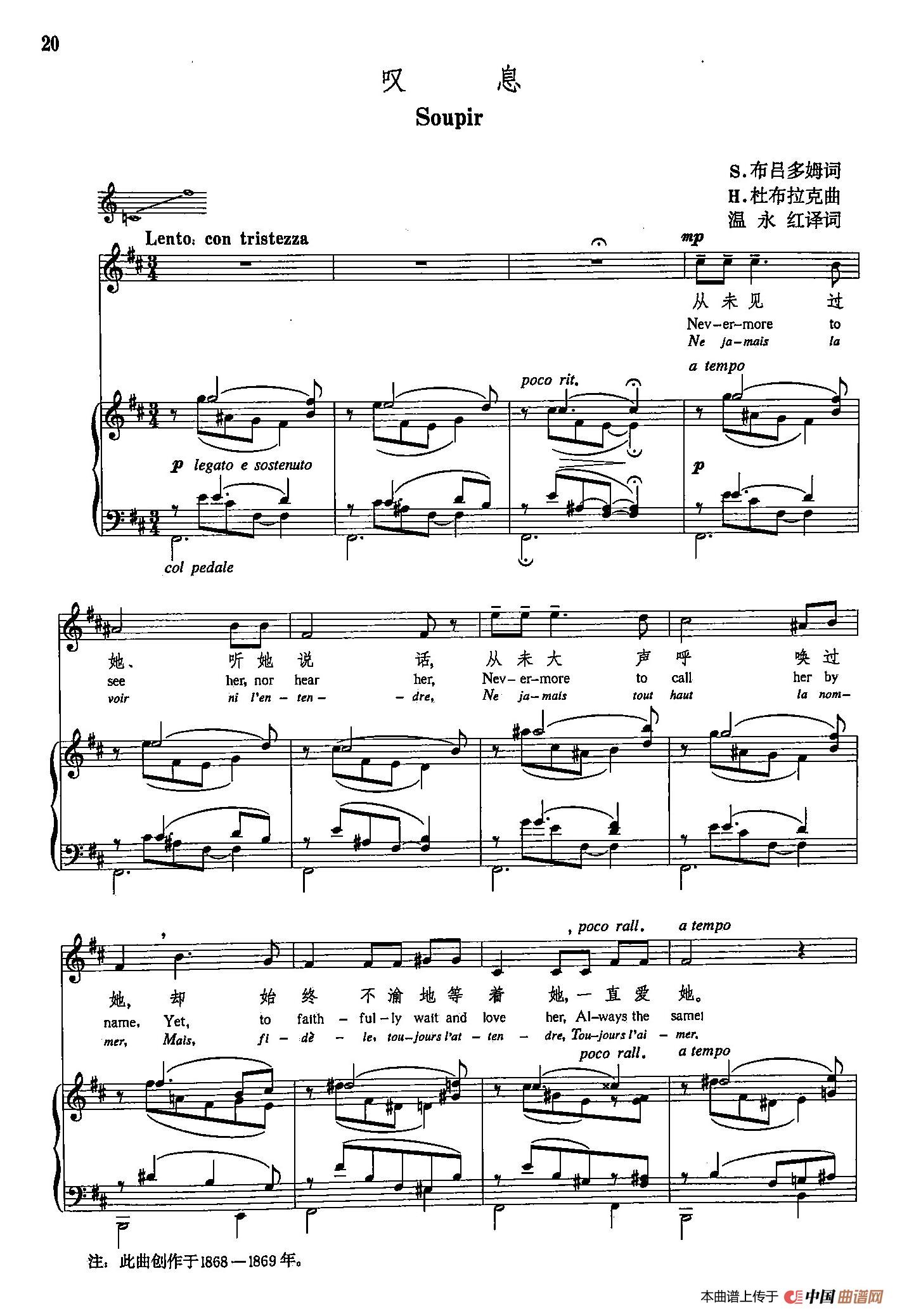 声乐教学曲库5-3叹息(正谱)曲谱是由作词:S·布吕多姆作曲:H·杜布拉克,上传:瓦莲金娜AA,版权归原作者所有。