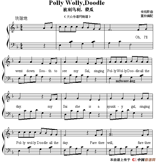 polly Wolly,Doodle(波利乌利,傻瓜)(英文儿歌弹唱)曲谱是由作曲:董放编配,上传:秋叶起舞,版权归原作者所有。