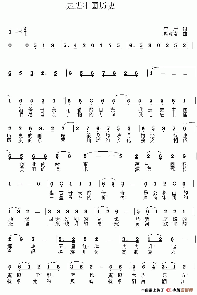 走进中国的历史曲谱是由作词:李严作曲:赵晓南,上传:车里子,版权归原作者所有。