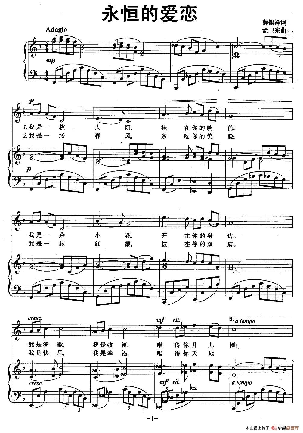 永恒的爱恋(薛锡祥词 孟卫东曲、正谱)曲谱是由作词:薛锡祥作曲:孟卫东,上传:小玉米,版权归原作者所有。