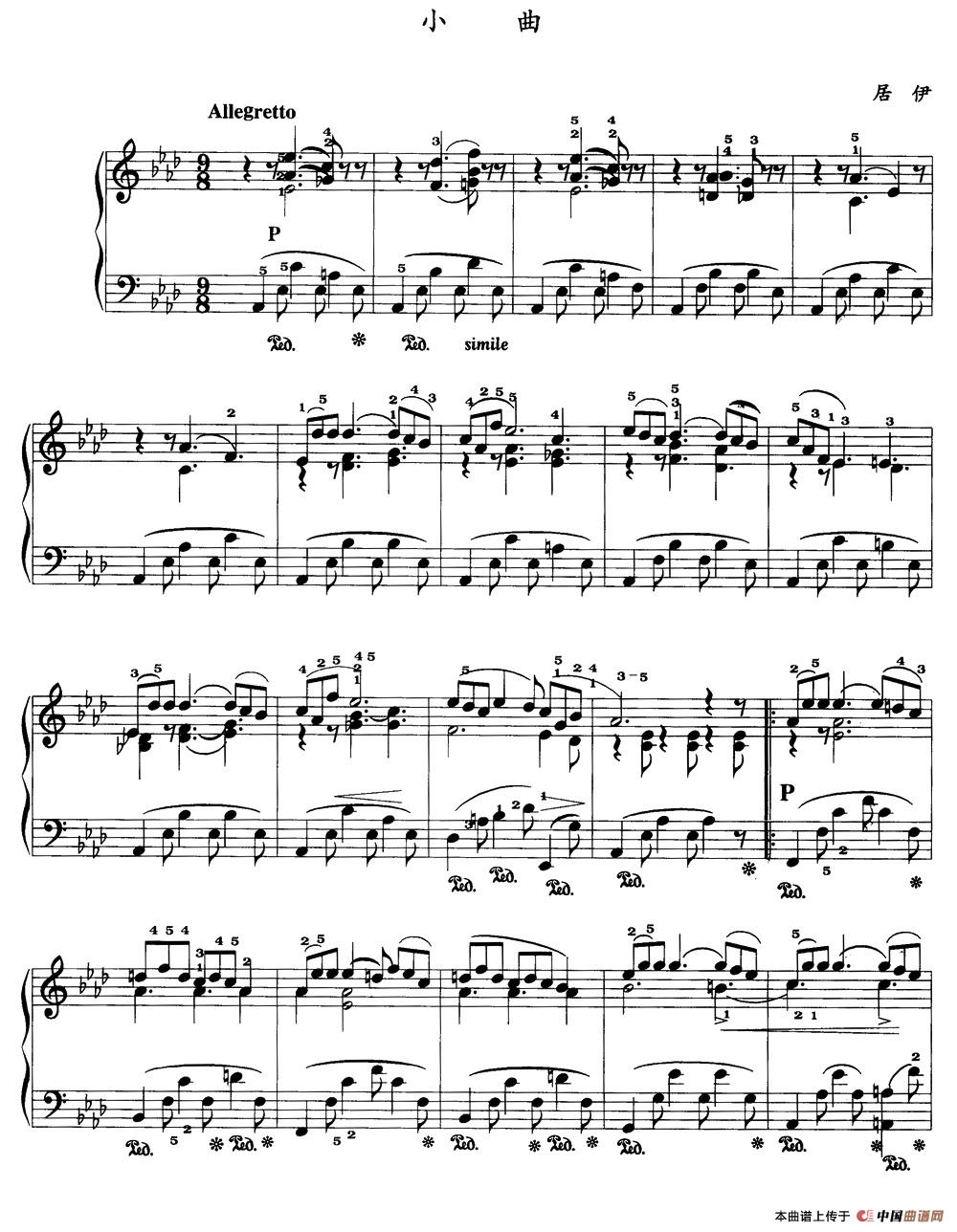 温馨提示:想要保存《小曲(居伊作曲版)》钢琴谱,感受别样音乐魅力曲谱?在曲谱图片上单击右键,选择"图片另存为...",即可将该曲谱保存到您的电脑本地,想要打印出来?将图片插入到WORD中,调整合适到大小打印即可。