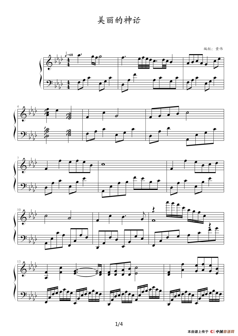 温馨提示:想要保存《神话(黄伟编配版)》钢琴谱,经典神话旋律再现 《神话(黄伟编配版)》钢琴谱,诉说浪漫神话故事 《神话(黄伟编配版)》钢琴谱,演绎凄美神话传奇曲谱?在曲谱图片上单击右键,选择"图片另存为...",即可将该曲谱保存到您的电脑本地,想要打印出来?将图片插入到WORD中,调整合适到大小打印即可。