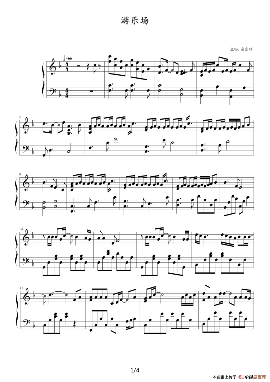 温馨提示:想要保存《游乐场》钢琴谱,充满欢乐童趣乐章曲谱?在曲谱图片上单击右键,选择"图片另存为...",即可将该曲谱保存到您的电脑本地,想要打印出来?将图片插入到WORD中,调整合适到大小打印即可。