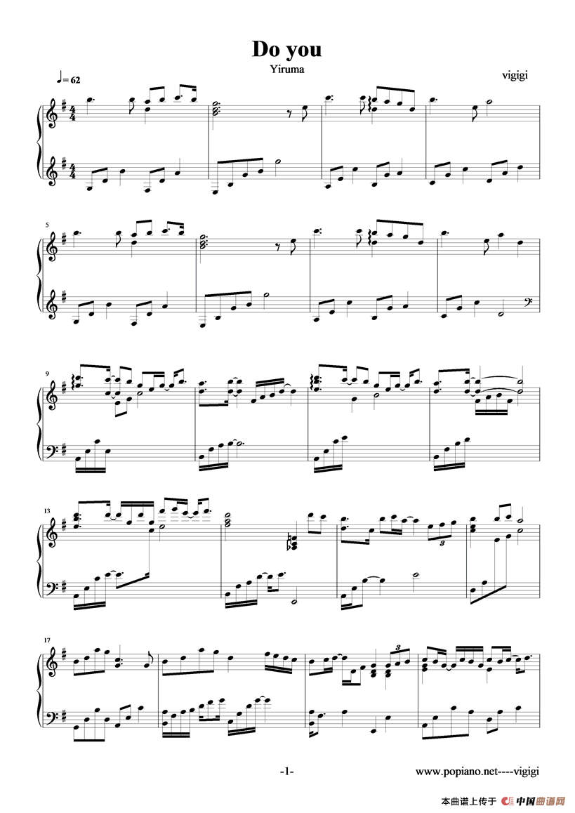 温馨提示:想要保存《doyou》钢琴谱,一首独特的乐曲曲谱?在曲谱图片上单击右键,选择"图片另存为...",即可将该曲谱保存到您的电脑本地,想要打印出来?将图片插入到WORD中,调整合适到大小打印即可。