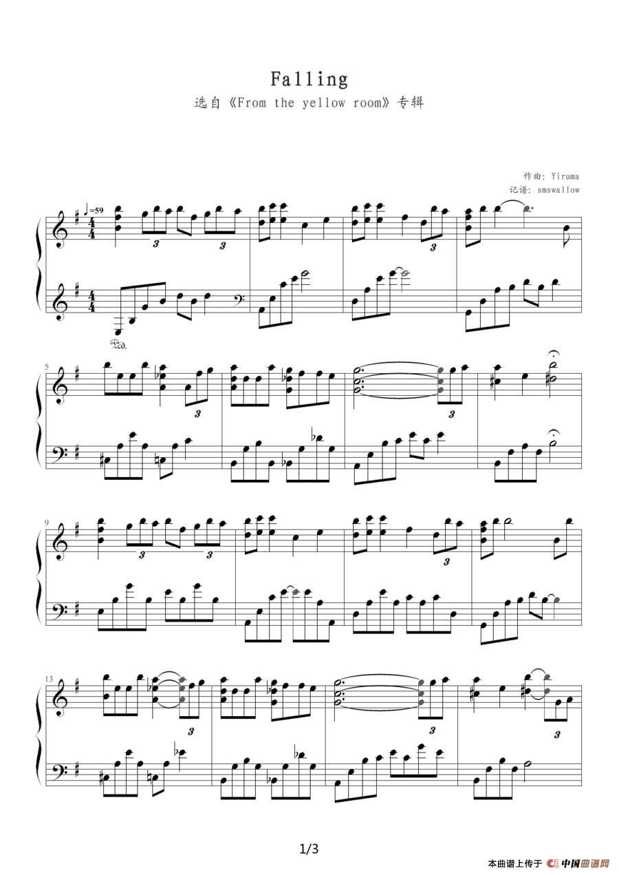 温馨提示:想要保存Falling钢琴谱,一首动听的歌曲曲谱?在曲谱图片上单击右键,选择"图片另存为...",即可将该曲谱保存到您的电脑本地,想要打印出来?将图片插入到WORD中,调整合适到大小打印即可。