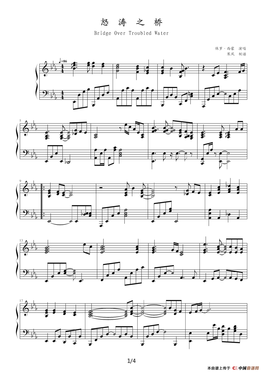 温馨提示:想要保存怒涛之桥钢琴谱,激昂澎湃的旋律曲谱?在曲谱图片上单击右键,选择"图片另存为...",即可将该曲谱保存到您的电脑本地,想要打印出来?将图片插入到WORD中,调整合适到大小打印即可。