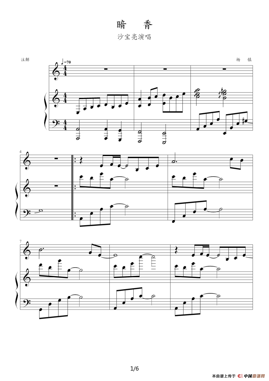 温馨提示:想要保存暗香钢琴谱,旋律扣人心弦, 暗香钢琴谱,尽显深情意境, 暗香钢琴谱,诉说别样故事,曲谱?在曲谱图片上单击右键,选择"图片另存为...",即可将该曲谱保存到您的电脑本地,想要打印出来?将图片插入到WORD中,调整合适到大小打印即可。