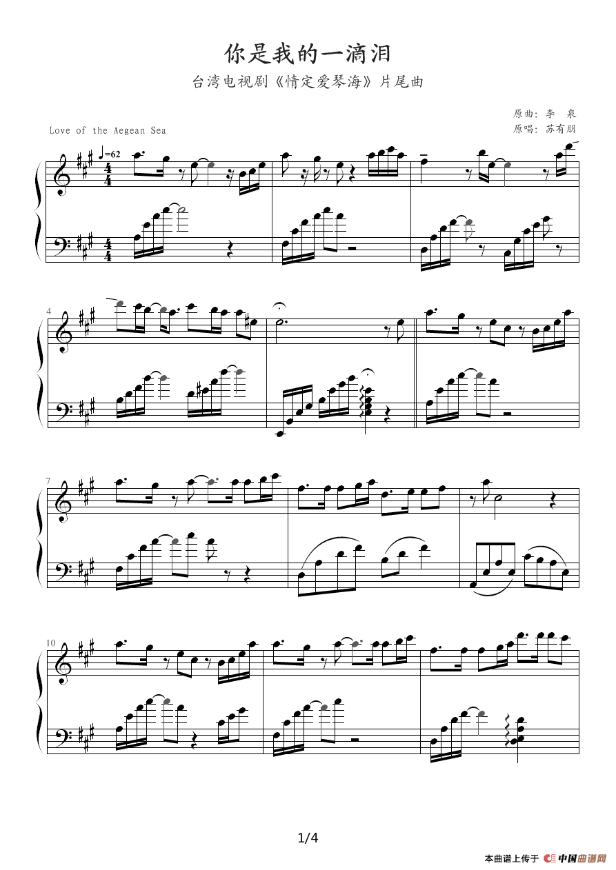 温馨提示:想要保存你是我的一滴泪,唱出悲伤爱情() 你是我的一滴泪,诠释伤感意境() 你是我的一滴泪,诉说深情爱意()曲谱?在曲谱图片上单击右键,选择"图片另存为...",即可将该曲谱保存到您的电脑本地,想要打印出来?将图片插入到WORD中,调整合适到大小打印即可。