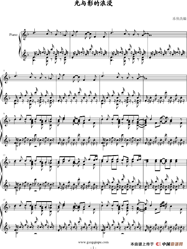 温馨提示:想要保存光与影的浪漫,谱写梦幻旋律曲谱?在曲谱图片上单击右键,选择"图片另存为...",即可将该曲谱保存到您的电脑本地,想要打印出来?将图片插入到WORD中,调整合适到大小打印即可。