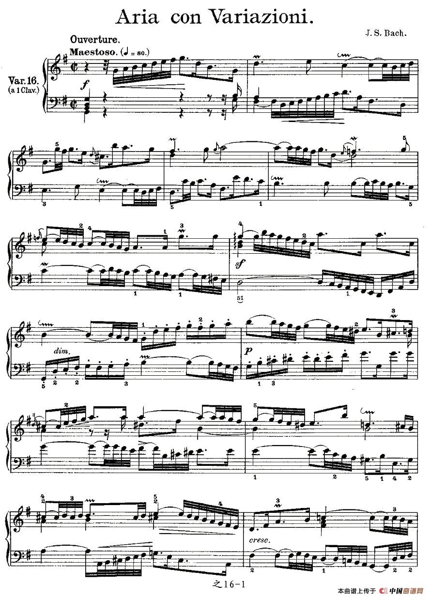 温馨提示:想要保存AriaconVariazioni之16钢琴谱,充满变化的旋律之作曲谱?在曲谱图片上单击右键,选择"图片另存为...",即可将该曲谱保存到您的电脑本地,想要打印出来?将图片插入到WORD中,调整合适到大小打印即可。