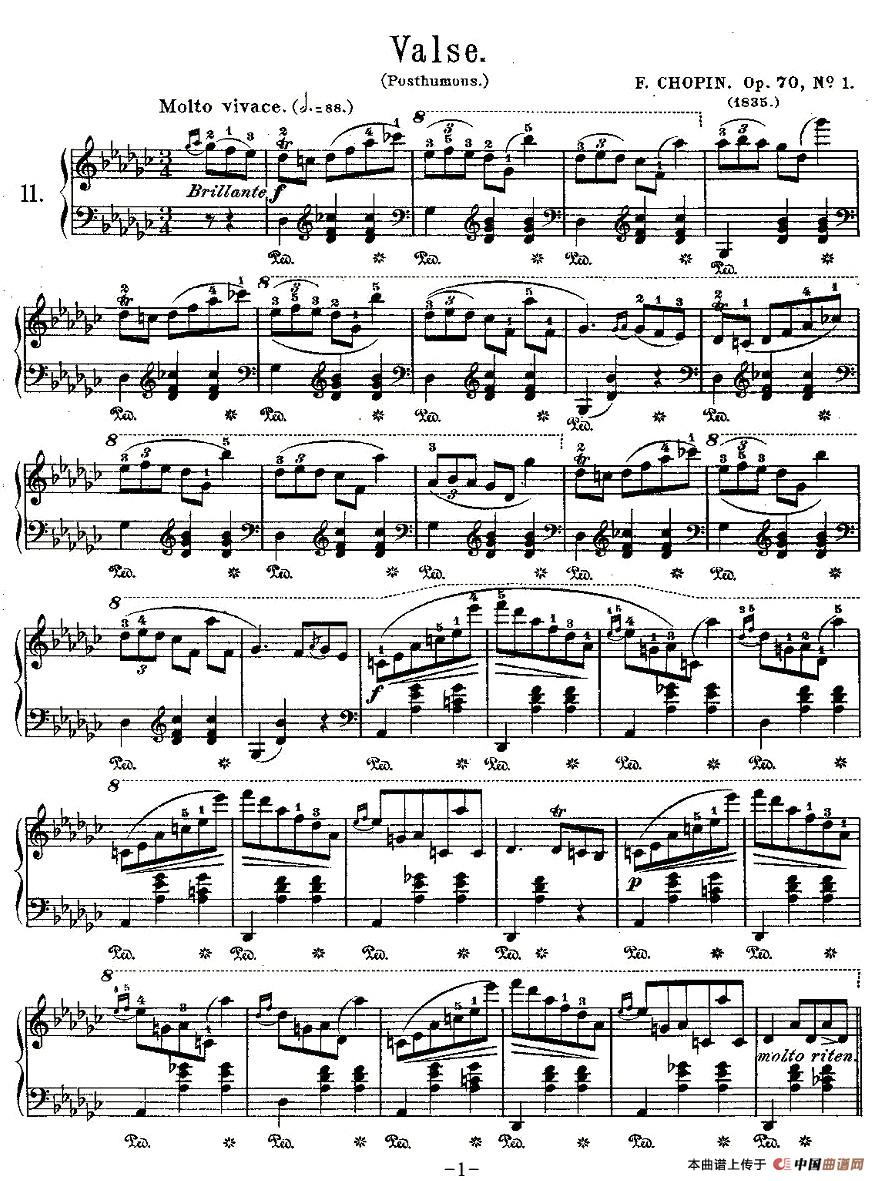 温馨提示:想要保存《valse,Op.70,No.1》钢琴谱,经典圆舞曲韵味足曲谱?在曲谱图片上单击右键,选择"图片另存为...",即可将该曲谱保存到您的电脑本地,想要打印出来?将图片插入到WORD中,调整合适到大小打印即可。