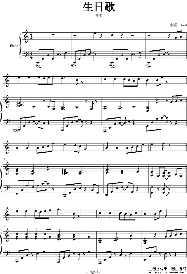 温馨提示:想要保存生日歌弹唱版钢琴谱,经典欢快的祝福曲 曲谱?在曲谱图片上单击右键,选择"图片另存为...",即可将该曲谱保存到您的电脑本地,想要打印出来?将图片插入到WORD中,调整合适到大小打印即可。