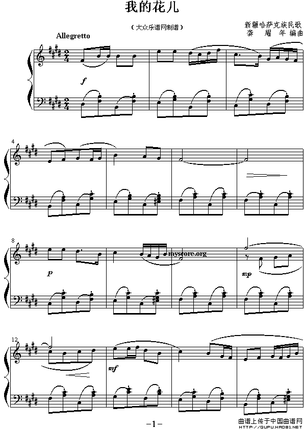 温馨提示:想要保存《我的花儿》钢琴谱,优美旋律动人心 《我的花儿》钢琴谱,花儿绽放的音符 《我的花儿》钢琴谱,歌曲饱含的深情曲谱?在曲谱图片上单击右键,选择"图片另存为...",即可将该曲谱保存到您的电脑本地,想要打印出来?将图片插入到WORD中,调整合适到大小打印即可。