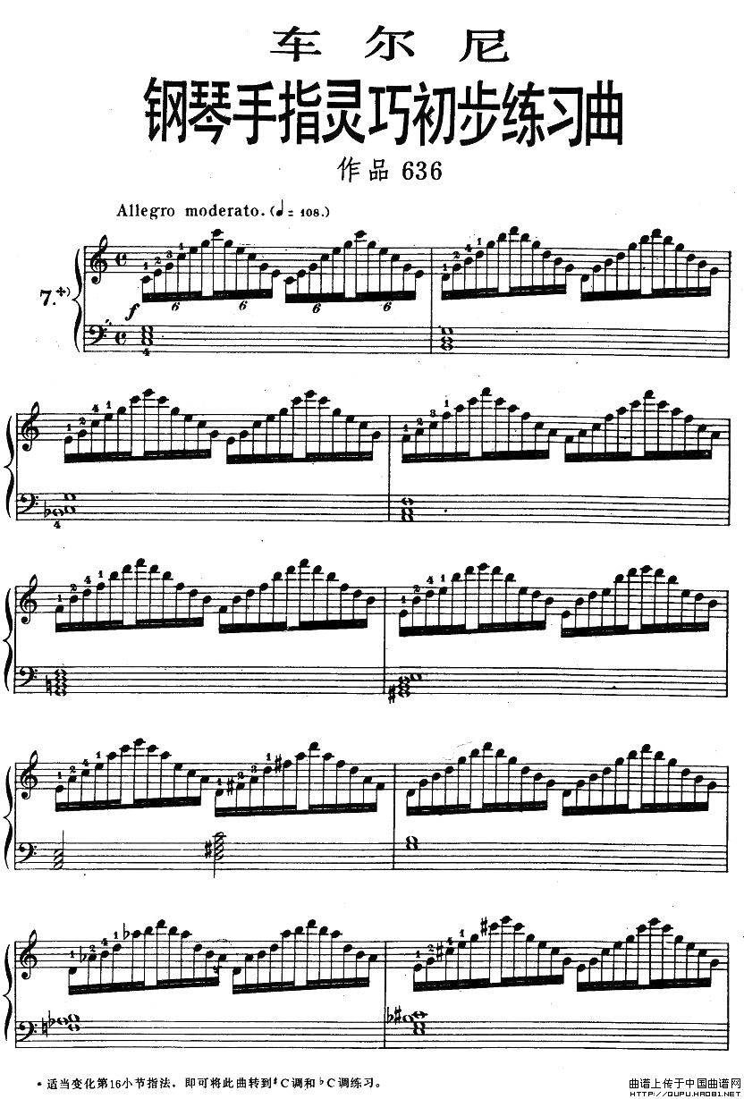 温馨提示:想要保存车尔尼钢琴手指灵巧初步练习曲之七,助力手指灵活弹奏曲谱?在曲谱图片上单击右键,选择"图片另存为...",即可将该曲谱保存到您的电脑本地,想要打印出来?将图片插入到WORD中,调整合适到大小打印即可。
