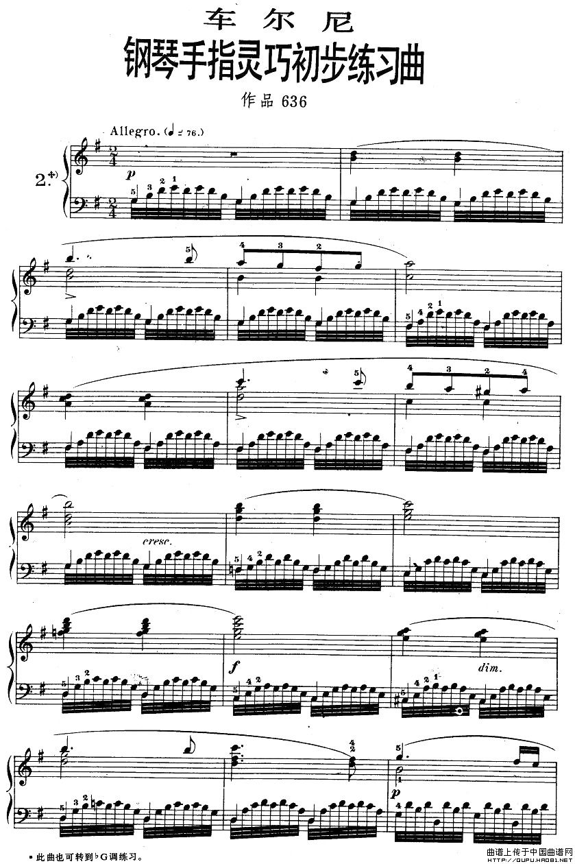 温馨提示:想要保存车尔尼钢琴手指灵巧初步练习曲之二,提升手指灵活的乐谱曲谱?在曲谱图片上单击右键,选择"图片另存为...",即可将该曲谱保存到您的电脑本地,想要打印出来?将图片插入到WORD中,调整合适到大小打印即可。