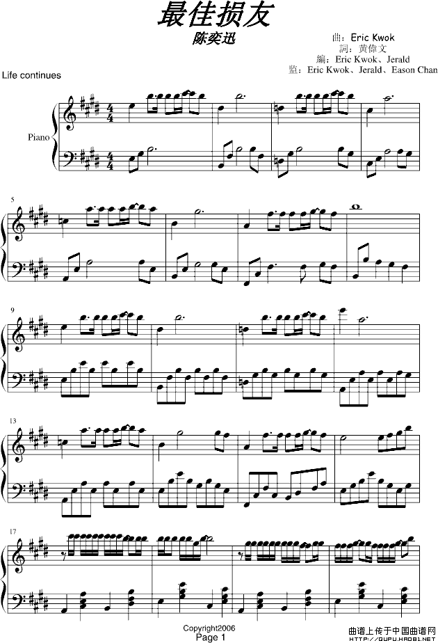 温馨提示:想要保存最佳损友钢琴谱,唱出友情的复杂 《最佳损友》钢琴谱,道尽老友的感慨 最佳损友钢琴谱,展现别样的情谊曲谱?在曲谱图片上单击右键,选择"图片另存为...",即可将该曲谱保存到您的电脑本地,想要打印出来?将图片插入到WORD中,调整合适到大小打印即可。
